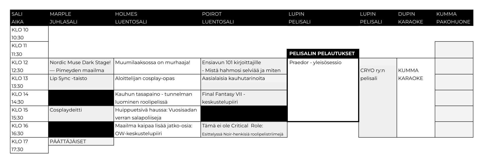 Praedor – yleisösessio Klo: 12:00 – 16:00